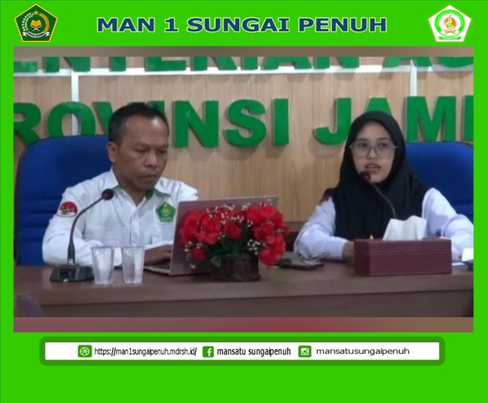 Sungai Penuh, (MAN 1 Sungai Penuh) – Dalam upaya peningkatan kapasitas dan optimalisasi pengelolaan informasi digital di lingkungan madrasah, MAN 1 Sungai Penuh Pengelola Website, Pengelola website MAN 1 Sungai Penuh mengikuti kegiatan Bimbingan Teknis (Bimtek) Website & Aplikasi yang diselenggarakan oleh Kantor Wilayah Kementerian Agama (Kanwil Kemenag) Provinsi Jambi. Kegiatan ini dilaksanakan secara daring melalui platform Zoom Meeting pada Selasa (26/8/2025), dimulai pukul 08.30 WIB hingga selesai.