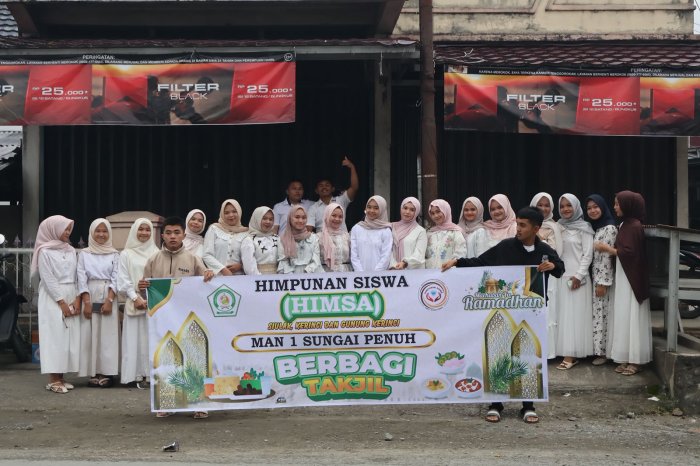 Sungai Penuh – Dalam rangka mengisi bulan suci Ramadan dengan kegiatan yang penuh makna, Himpunan Siswa Siulak dan Gunung Kerinci di MAN 1 Sungai Penuh mengadakan kegiatan berbagi kepada masyarakat sekaligus melaksanakan buka puasa bersama. Kegiatan ini dilaksanakan sebagai bentuk kepedulian sosial serta untuk mempererat tali silaturahmi antar siswa.